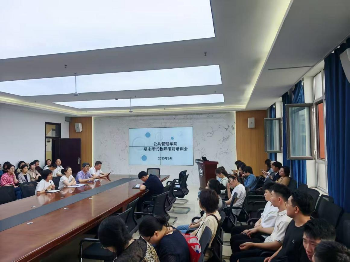 (通讯员:聂子航)为严肃考风考纪,规范考试管理,确保即将到来的期末考试安全、平稳、有序进行,公共管理学院于2025年6月19日北湖东区主楼401室组织召开了期末考试监考教师专项培训会。会议由教学副院长冯娜主持,全体承担本学期期末监考任务的教师参加了会议。