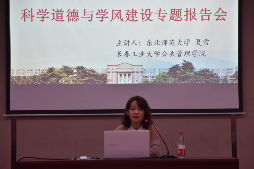 东北师范大学教育学部教育管理学院教授、博士生导师夏雪老师作了题为“加强研究生科学道德和学风建设”的专题报告。从科学道德和学风建设“是什么”、“为什么”以及“如何加强”三个方面展开,通过科研不端行为案例,批出了加强科学道德和学风建设对于进一步树立科研诚信意识、提高科学道德素养、形成求真务实的优良学风的重要意义。