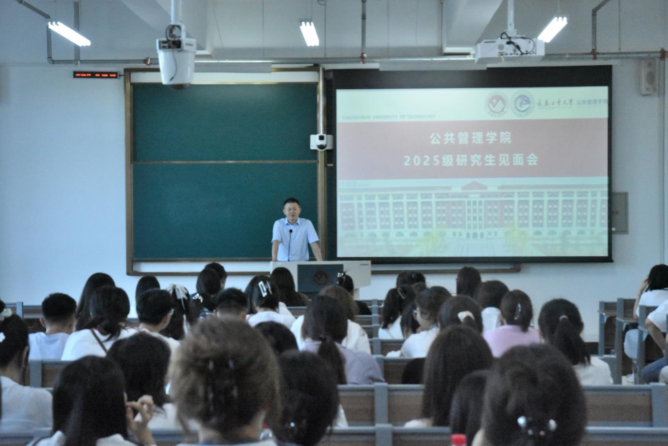 2025级研究生新生见面会暨入学教育大会于2025年9月7日13:40在北湖东区主楼101教室举行。学院副院长吕红主持会议,党委副书记陈磊、各学科负责人及研究生教学秘书出席本次会议。