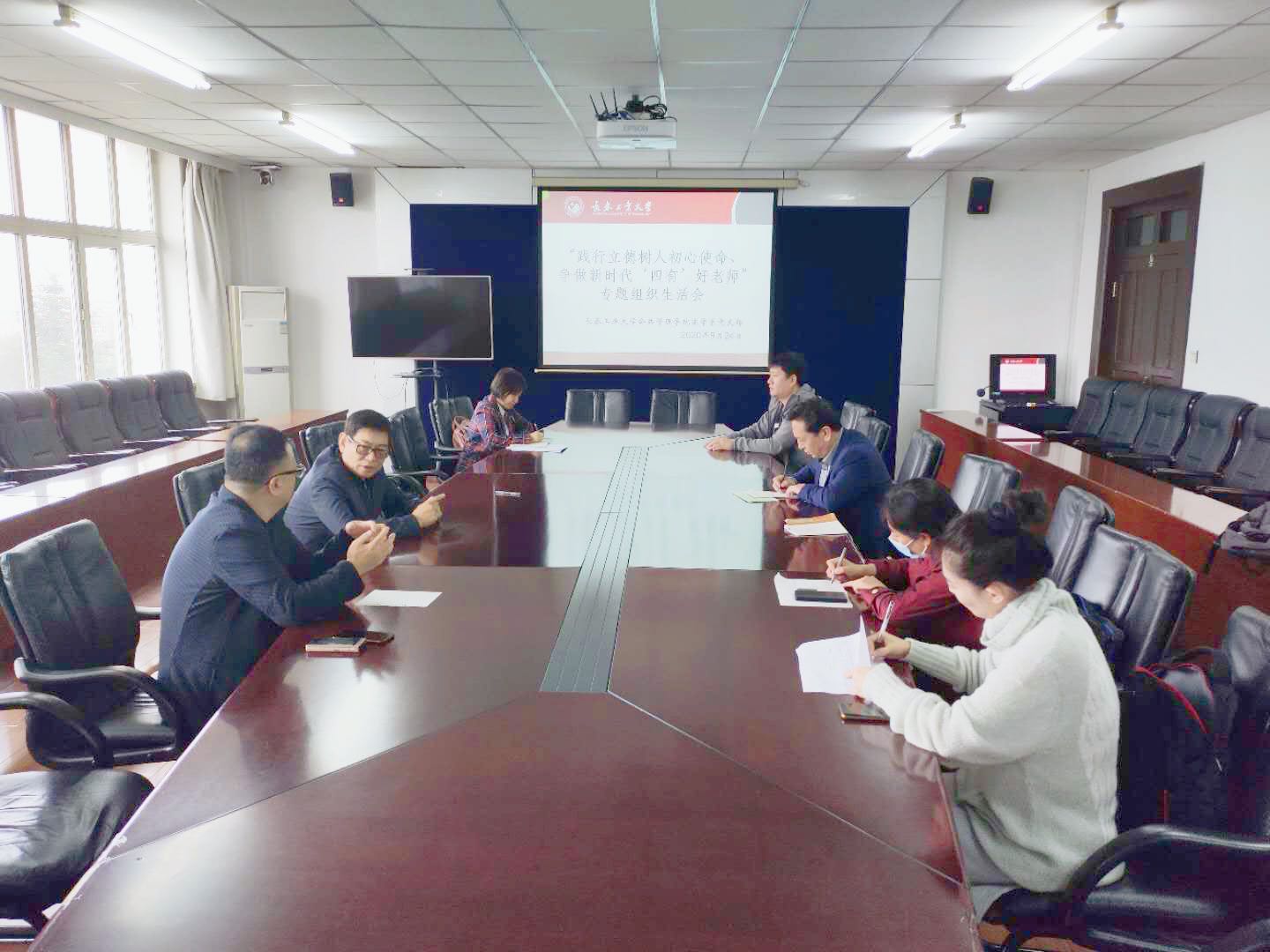 法学系党支部于2020年9月24日13点30分在南湖校区主楼1561室召开“践行立德树人初心使命、争取新时代‘四有’好老师”专题组织生活会。学校党委副书记孟雷同志全程参加会议。会议由法学系党支部书记冯娜主持。