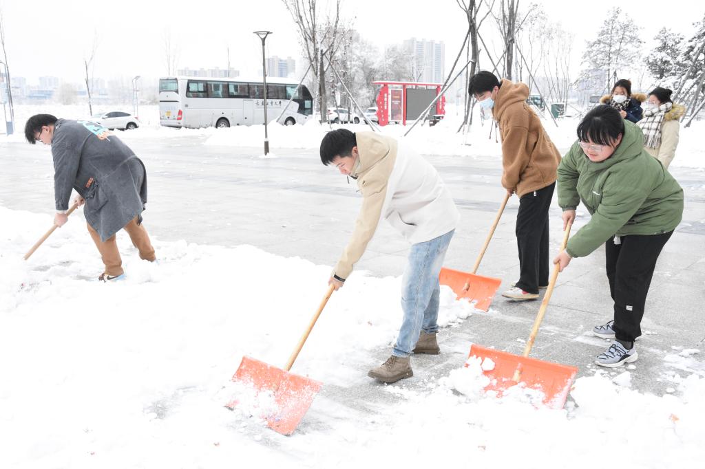 秉持着“劳动光荣,无私奉献”的精神,学生党员们积极响应活动号召。在明确注意事项后,学生党员分组行动,各司其职,迅速投入到清理工作中。学生党员拿雪铲、铁锹等清扫工具,对覆盖雪的地方进行彻底清扫,做到及时发现、及时处理、不留死角、不留痕迹。