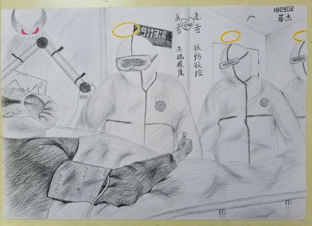 在这个充满爱心的日子,部分同学展现文采,画了一些防疫书画,弘扬雷锋精神,发扬志愿者意志!