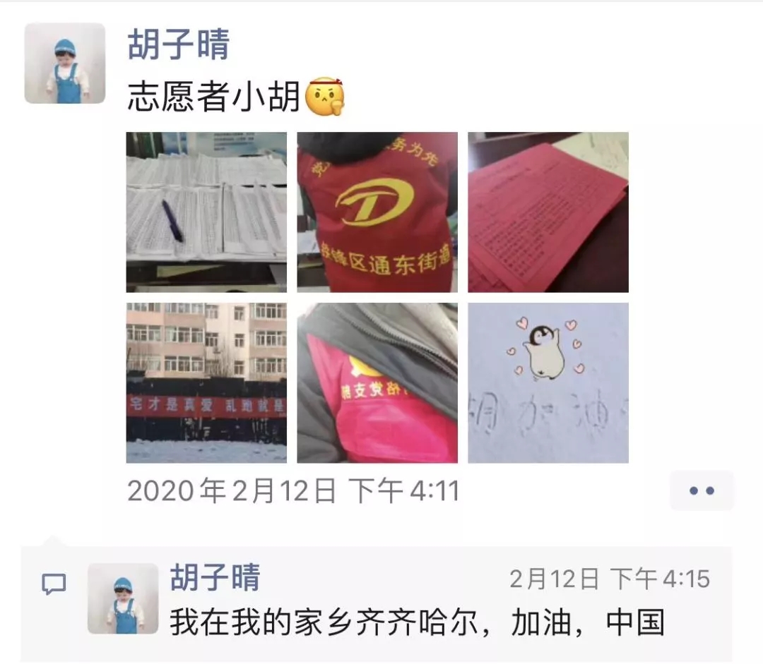 在祖国的边陲黑龙江省齐齐哈尔市,有最美逆行者,他们已经开始第四次援鄂行动,也有一直工作在医疗一线的医务工作者,还有在寒风里恶劣的天气中坚守岗位的警察同志,更有社区工作人员坚守在基层一线,守卫社区居民健康安全。而她也在里面尽自己微弱的一份力量,她叫胡子晴,是成人直播平台
