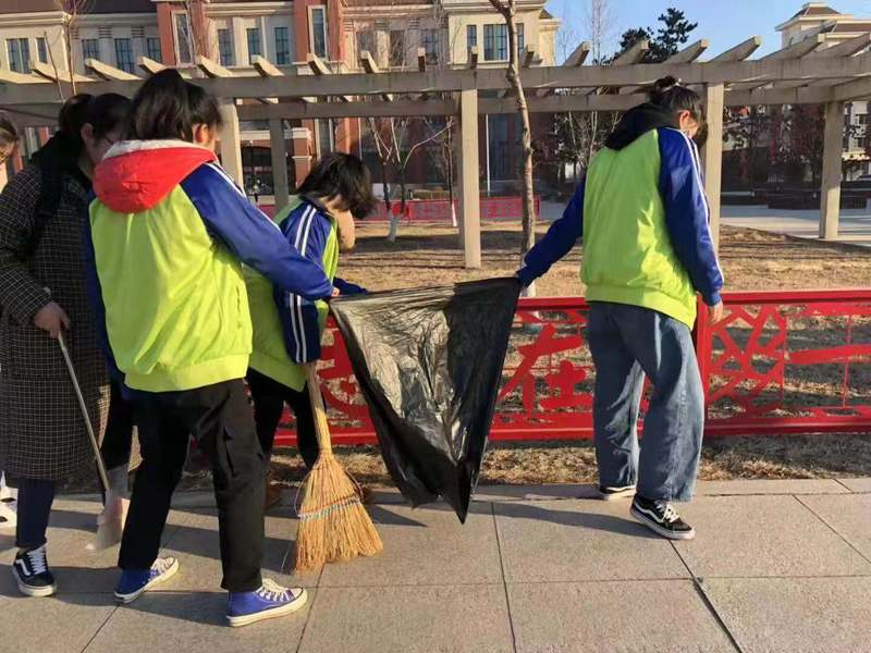 的学生们穿着校服,带着扫帚、垃圾袋清洁校园内的垃圾,成为校园里一道靓丽的风景。本次活动以班为单位开展,分别管理不同的区域,合理分工,各司其职。四十分钟后,学校的路变得更加清洁,杂草下的垃圾也被一一清理干净。打扫结束后,同学们还更换了校园内垃圾桶中的垃圾袋。三月的北湖,气温仍然比较低,同学们的脸,手也被寒风冻的通红,大家仍然没有退缩,依旧埋头认真工作。