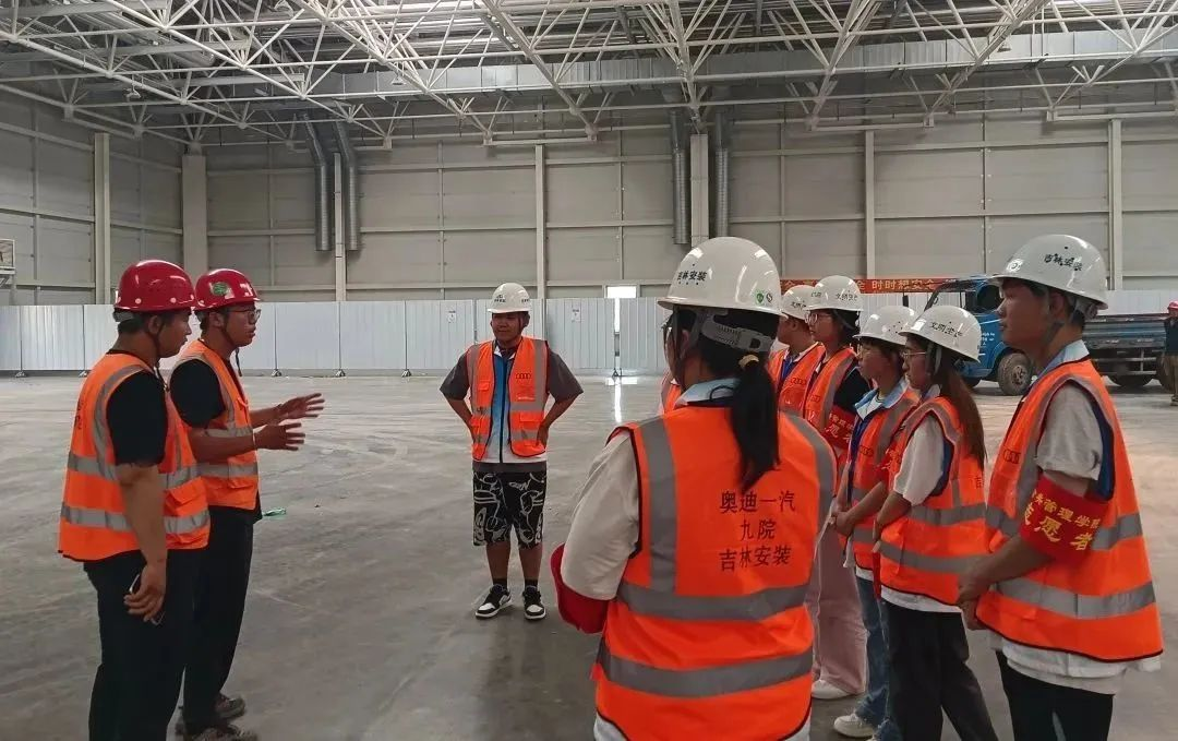 实践团来到吉林安装进行观察学习,感受吉林安装集团的成人直播平台。工作人员为大家悉心准备了安全帽和工作服,将同学们带到工地近距离的观看工人的工作,同时还详细介绍了相关工艺流程、施工优点等情况。实践团成员感受到了吉林安装科学管理、不断创新、团结一致的成人直播平台。