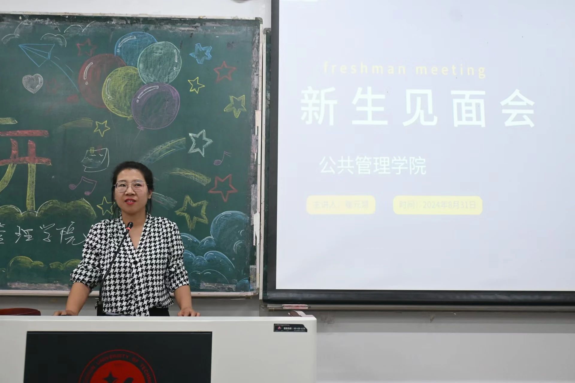 见面会上,崔元慧老师向2024级新生进行自我介绍,并围绕校规校纪、军训安排、宿舍卫生等方面进行讲解。崔老师鼓励新生们在大学期间要积极参加学校和学院组织的各种活动,叮嘱同学们要在大学期间多尝试、多探索,合理安排时间,提升自我管理能力。在答疑环节中,崔老师就新生们提出的有关入学适应、自主学习、专业发展方向等方面的问题进行了细致解答。