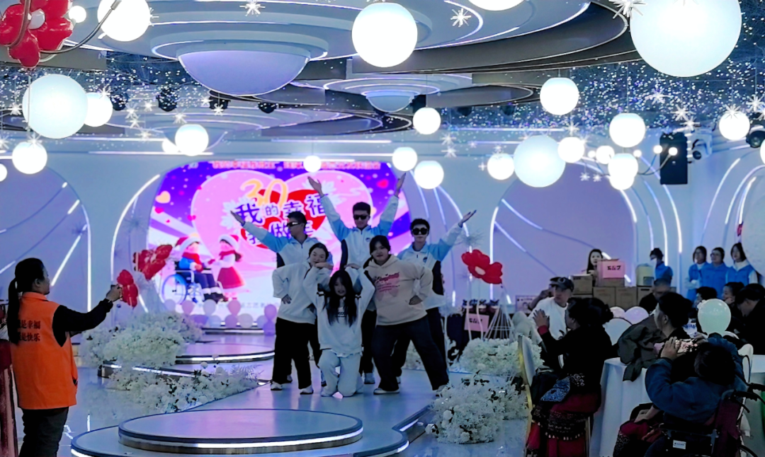 6名志愿者还为现场残障人士献上了精心编排的歌舞表演,灵动的舞姿与温暖的旋律传递着志愿者们的美好祝福,瞬间点燃现场氛围,赢得阵阵掌声。