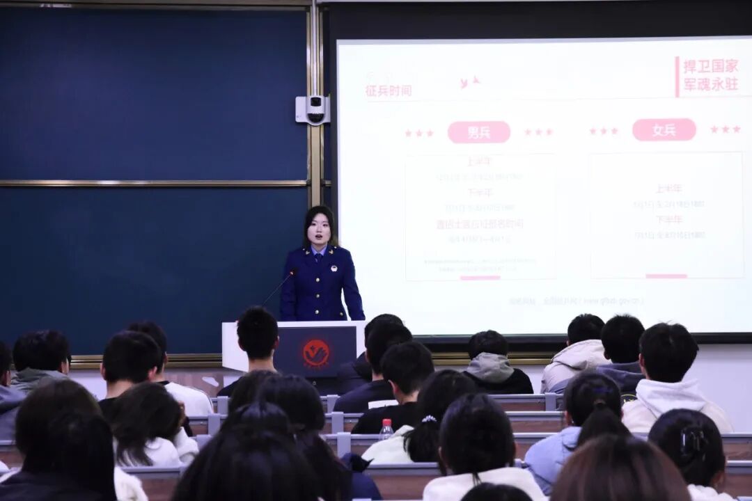 学子昂扬向上的精神风貌,学院于10月23日晚在北湖东区主教学楼开展征兵宣讲及国旗护卫队纳新动员活动,此次活动聚焦内容宣讲、聚力榜样引领,点燃了同学们的激情。