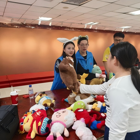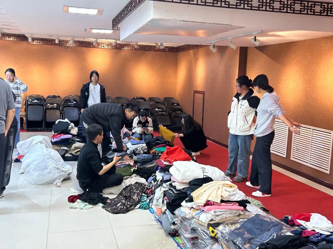 志愿者们迅速投入工作,将前期募捐所得的衣物仔细分类、整齐陈列,方便参与活动的小朋友及家长挑选心仪物品。