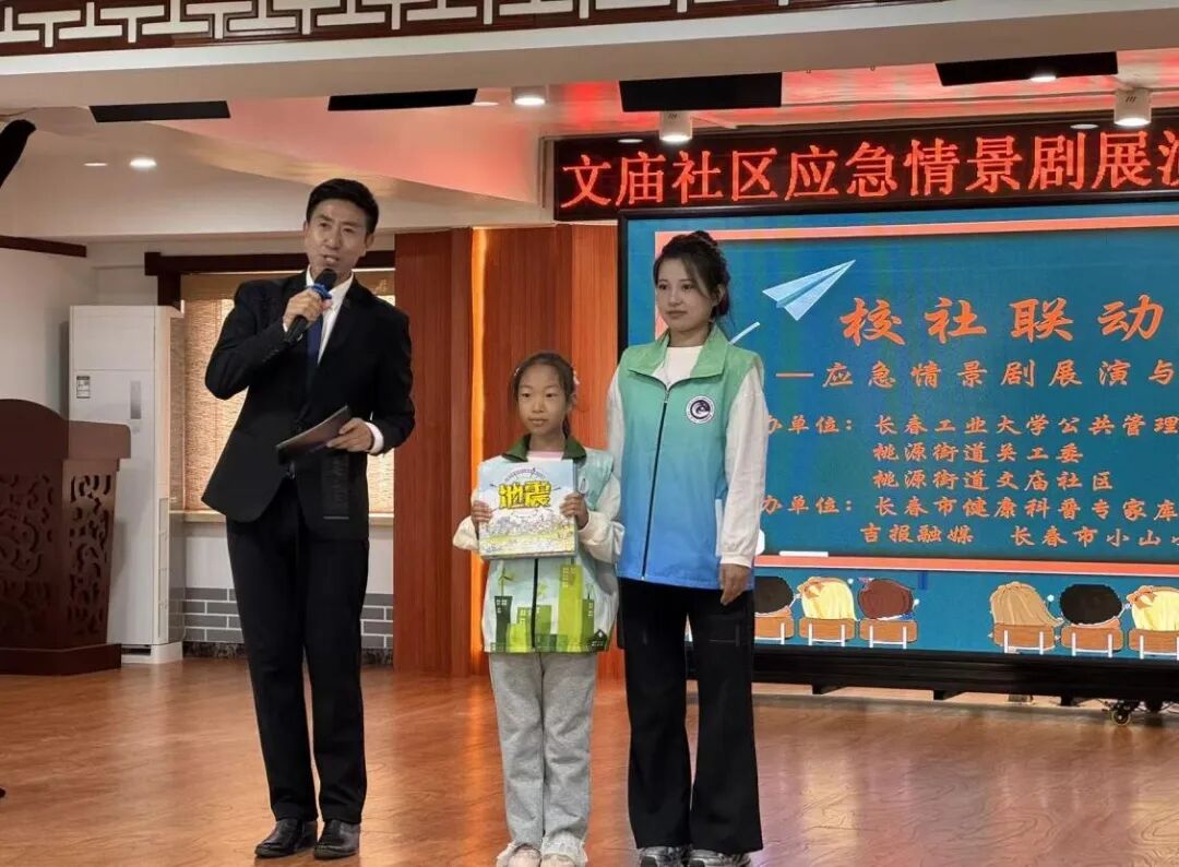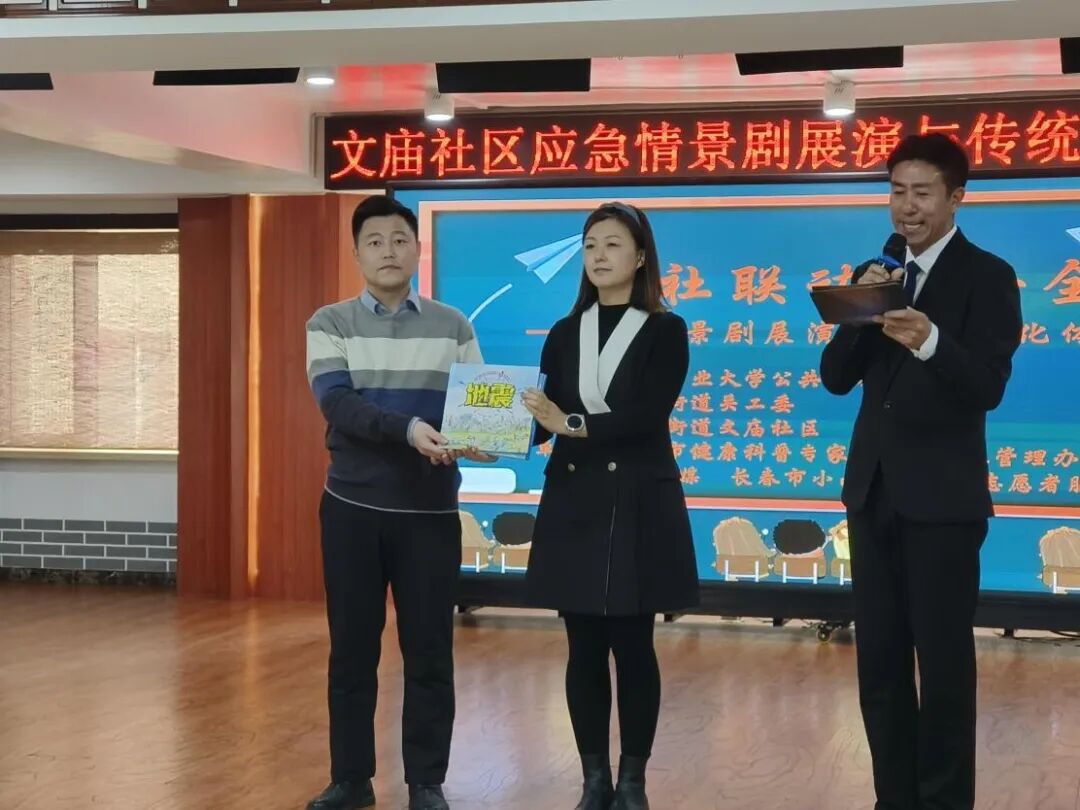 李盛基主任和学生代表赵莹分别将安全应急科普读物赠送给文庙社区和小学生代表。社区公益组织吉报融媒、小山小水科普志愿者服务队为学院颁发荣誉证书。