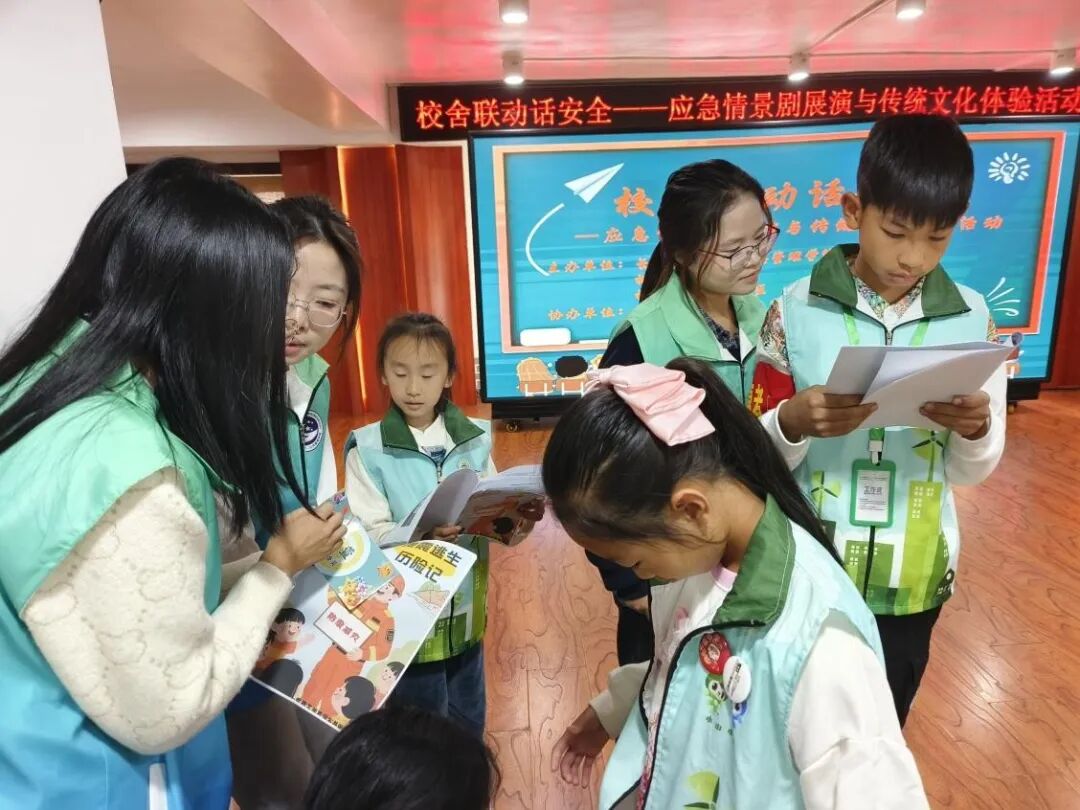 在地震情景剧展演环节,大学生通过表演还原地震中的避险与互助场景,随后邀请小朋友们上台模仿,当看到孩子们学着剧中角色“安抚同伴”“有序撤离”时,我们深刻体会到:这种以学生为中心的学导结合课堂,才是学生真正需要的课堂。