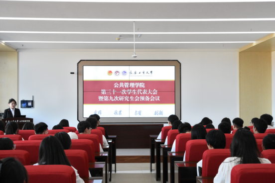 在北湖东区教学楼301报告厅召开第三十一次学生代表大会暨第九次研究生代表大会。参会人员有学院第三十届主席团成员崔渝欣、厉笑燕、孙泽曦;学院第三十届团委学生副书记周美彤以及70名本科生代表、11名研究生代表。