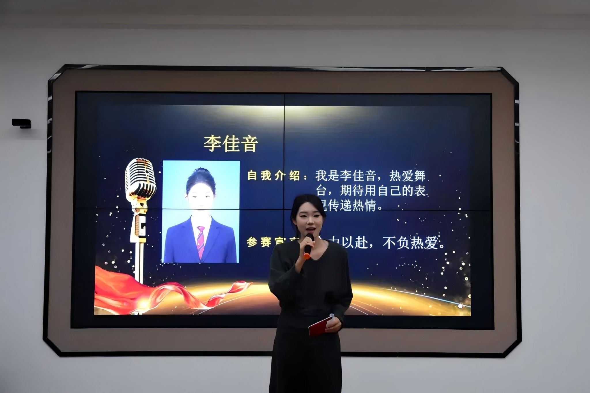 新闻网讯(通讯员 刘宸炜)“声韵暖如玉,入耳清灵;辞气慨而慷,尽显青春锋芒。”为丰富校园文化生活,营造积极向上、健康文明的校园文化氛围,提升广大青年学生的语言表达能力、逻辑思维能力,11月17日晚7时,“新声绽放,语你同行”“金话筒”主持人大赛决赛在北湖东区主楼301教室圆满收官。9名选手在本次比赛中同台竞技,学院党委组织员崔元慧老师、学生党支部书记初靖皓老师莅临指导。让我们共同回顾这场“声”与“情”的盛宴!