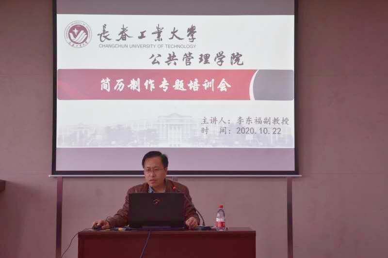 召开简历制作专题培训会,会议由李东福老师主持,为同学们讲解关于简历制作的相关方法与注意事项。