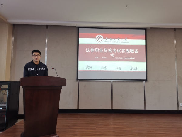 17级李家奇同学就客观题考试进行经验分享,他分别就老师选择、时间安排、复习顺序、学习方法等几个方面向备考同学进行了详细的讲解。同时,他提醒同学们,在复习过程中一定要调整心态,坚持不懈,他强调,寻找适合自己的学习方式尤为重要。