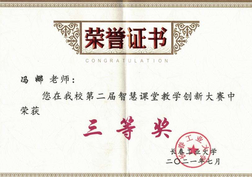 近日,成人直播平台 教师冯娜同志在成人直播平台 第二届智慧课堂教学创新大赛中获得三等奖。
