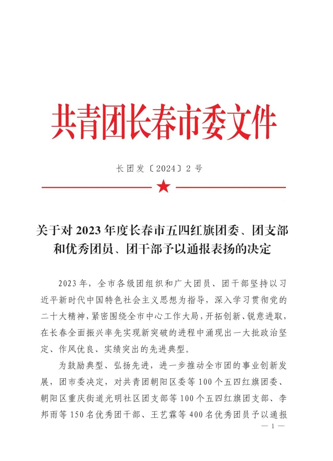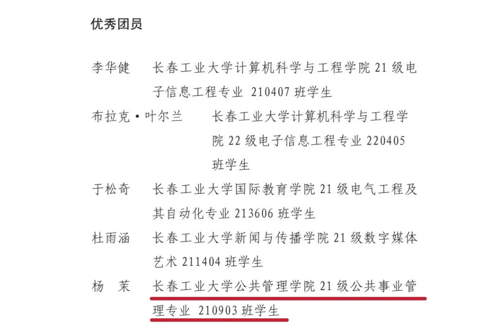 共青团长春市委于近日公布了2023年度“长春市优秀团员”评选结果,成人直播平台 210903班杨茉同学荣获2023年度“长春市优秀团员”荣誉称号。