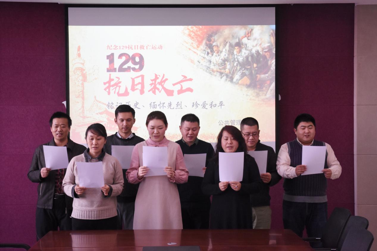 教职工们进行了以“学习一二九精神,争做新青年”为主题的慷慨朗诵。习总书记说:“青年是整个社会力量中最积极、最有生气的力量,国家的希望在青年,民族的未来在青年。”