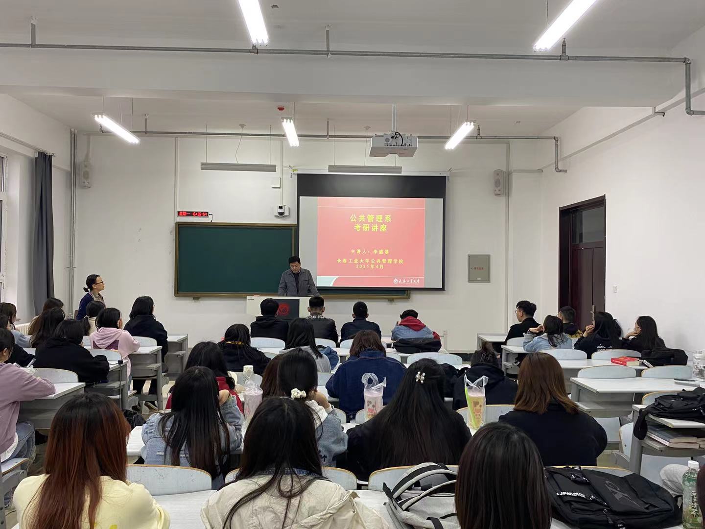 会后,公共管理系按照早谋划、早准备的方针,系主任李盛基老师、支部书记汪泳老师针对18级公共事业管理、劳动与社会保障两个班级的学生,组织了一场考研与就业专题讲座。