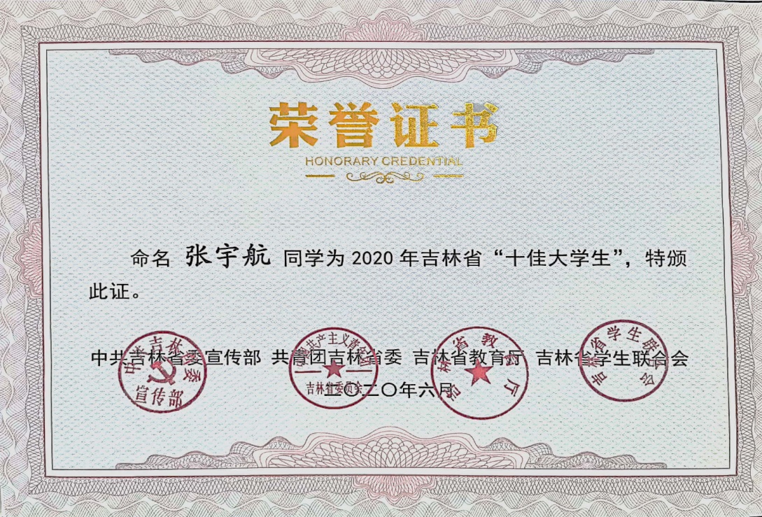 热烈祝贺我院张宇航荣获吉林省“十佳大学生”,模范践行社会主义核心价值观,取得了突出的成绩,为成人直播平台