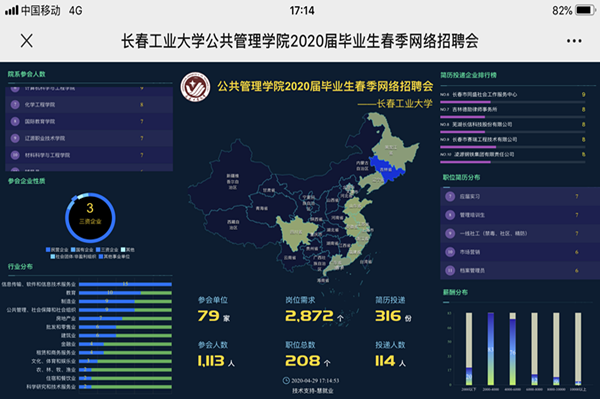 全体师生积极参与此次网络招聘会,截止4月29日17:00,共有1113名师生参与到此次招聘会中。投递简历316份,初步达成就业意向7人。
