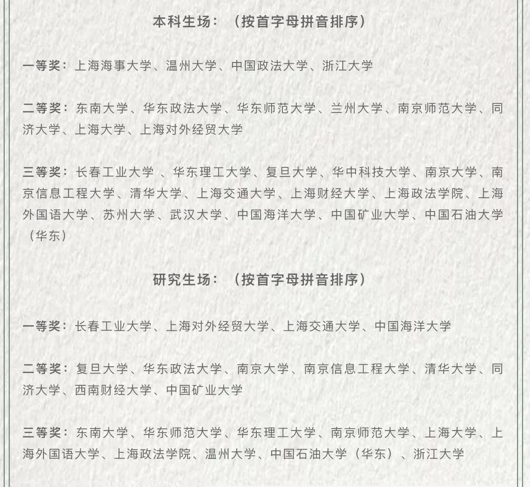 法学系研究生代表队荣获一等奖,本科生代表队荣获三等奖。研究生代表队将继续参加本月末在上海的决赛。