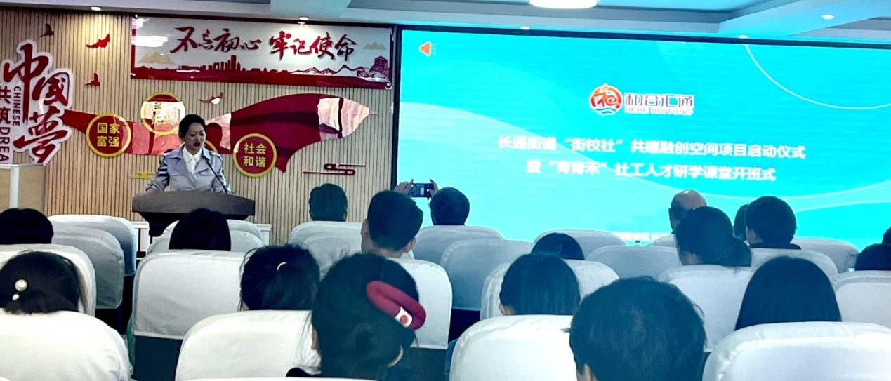、长春市同盛社会工作服务中心,共同举办的“育青禾”社工人才研学课堂在仪式后正式开课,丰富了长通街道“青苗培优”人才培育计划。街道60余名报考社工师考试及有学习意愿的机关干部、社区工作者、基层治理专干,听取了长春工大社工系主任汤道化讲授的首课。