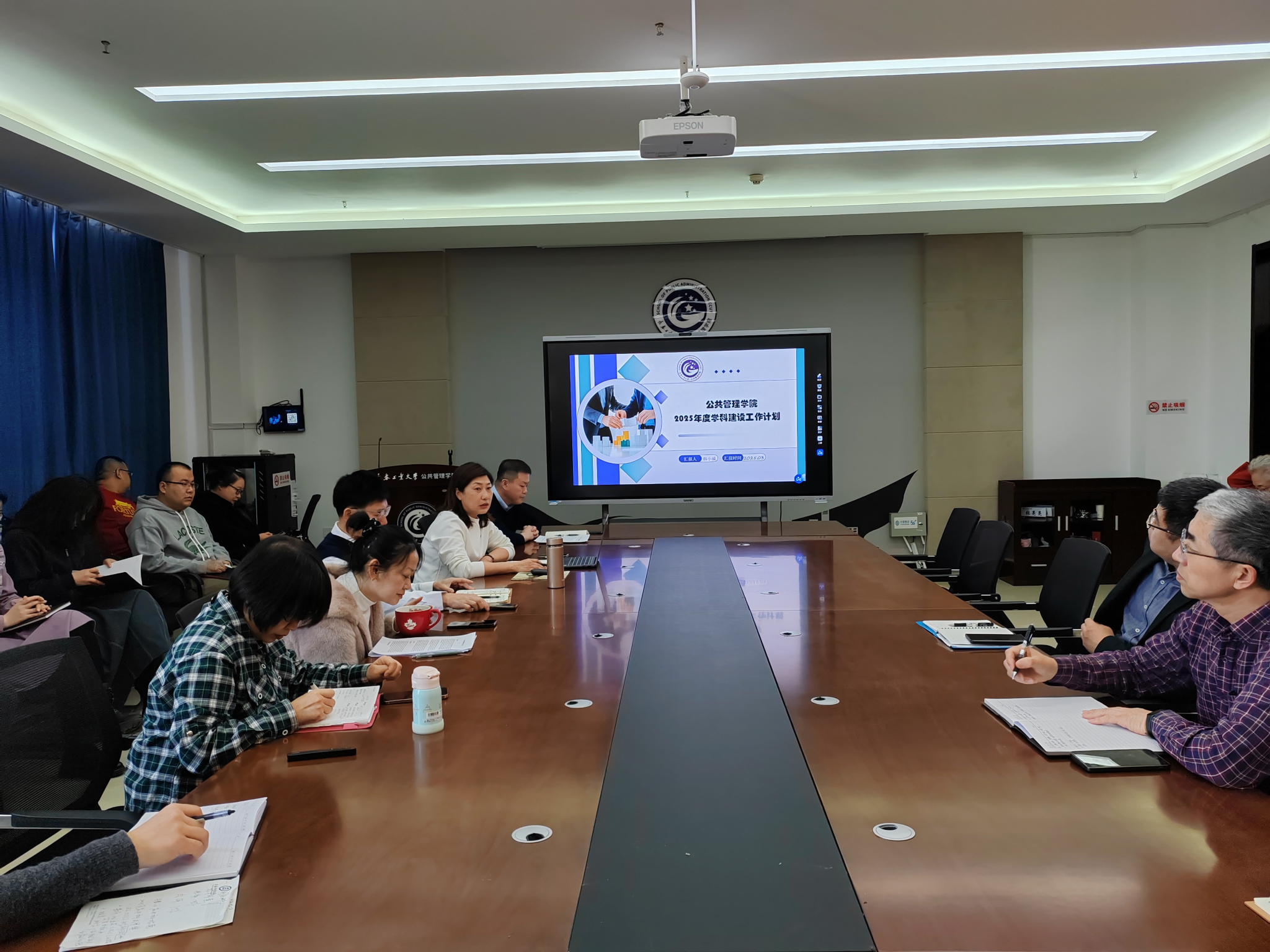 韩小威院长首先分析了2025年度各项工作对于学院建设的重要性,介绍了学院学科建设的背景、现状与不足,提出2025年度学科建设的目标、思路和措施,包括:结合国家教育规划、技术变革和社会需求等,凝练学科方向,推进应用型转型;加强人才引育,推进师资队伍建设;建设数字+社会治理平台,为学科建设提供有力支撑;开展多层次多类型的学术交流,扩展学科影响力;通过研究方向凝练、成果培育和资源整合等措施,持续推进博士点建设;落实教科研管理和人才培养等机制改革,制定并落实激励计划,在教科研成果和人才培养质量等方面取得更大进步。