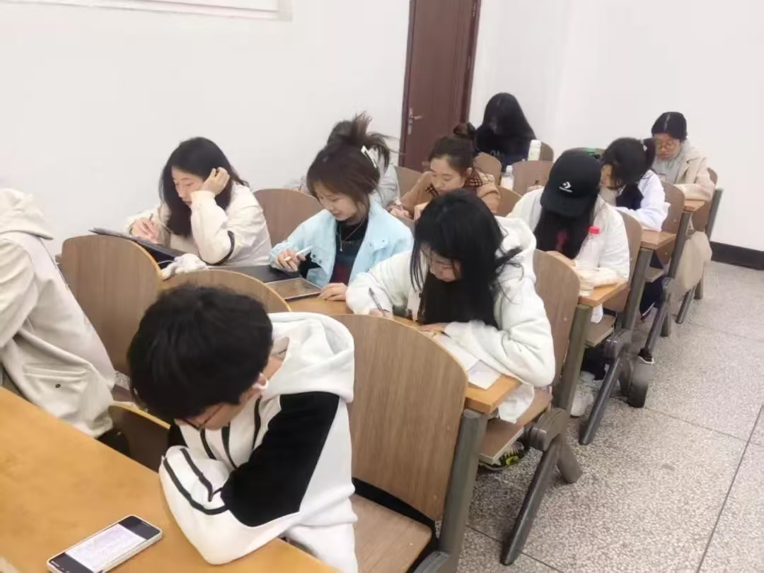 法学专业主要采用学习小组的方式,学习内容包括整理法学笔记,英语听写,进行法考网课刷题。早晚自习为同学们提供了一个良好的学习交流平台,营造了浓厚的学习氛围。同学们在自习过程中相互交流学习心得、分享学习资料,遇到问题时共同探讨解决,这种互帮互助的学习氛围有利于提升学习效率。