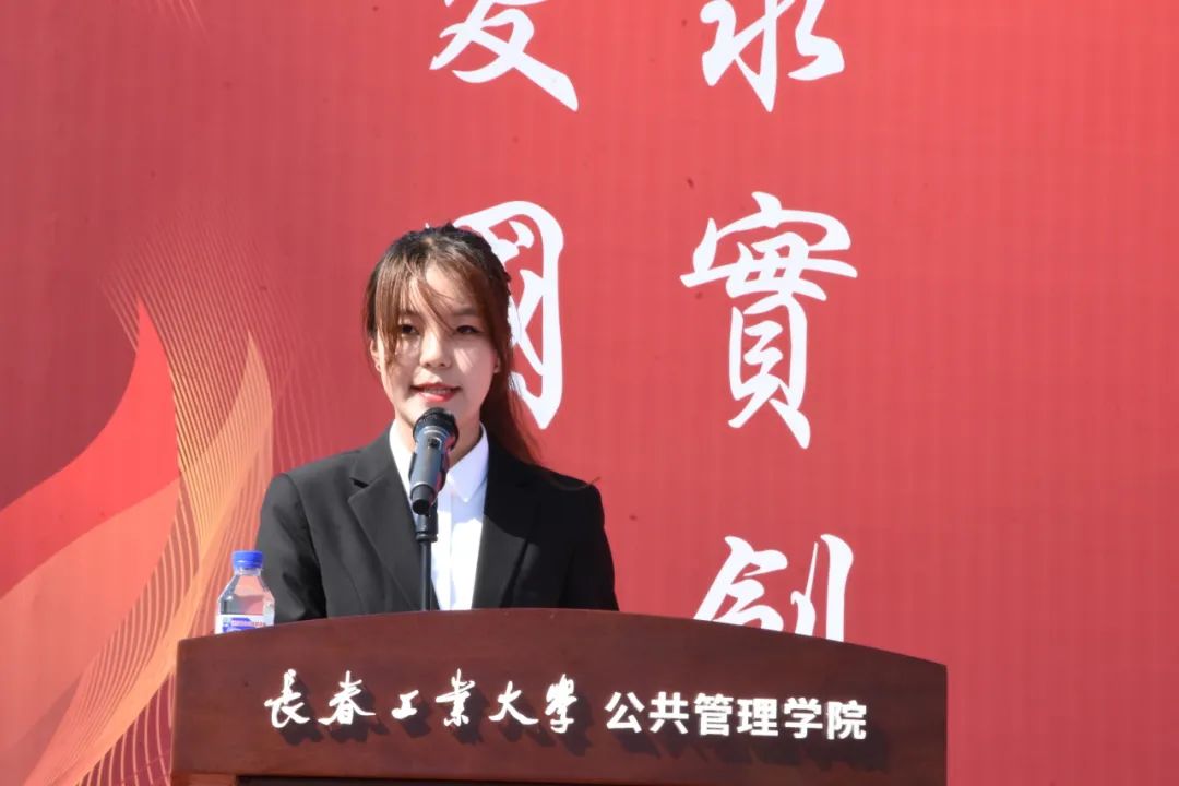 周佳慧代表2023级全体新生向领导、老师以及学长、学姐们表示衷心的感谢。周佳慧表示,进入大学后我们必须养成良好的道德行为习惯,认真规范自己的言行,树立远大的理想和正确的价值观、人生观。学习做一个品德高尚、诚实守信、尊敬师长、待人礼貌、遵守规章制度、刻苦学习、严格要求自己、遵守公德、关心集体的人。