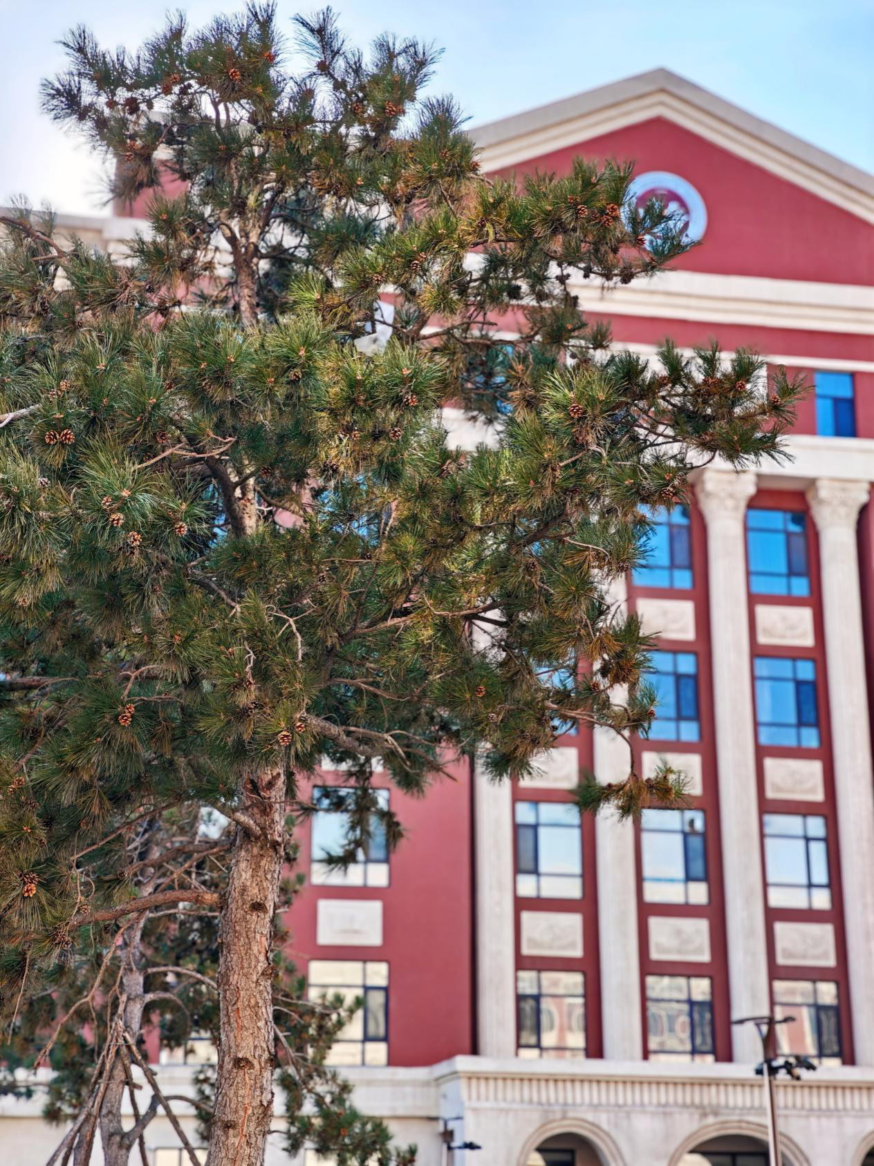 抬眼是万里澄澈的蓝,俯首是砖红建筑的沉稳,一蓝一红的碰撞,是校园里最鲜活的风景。