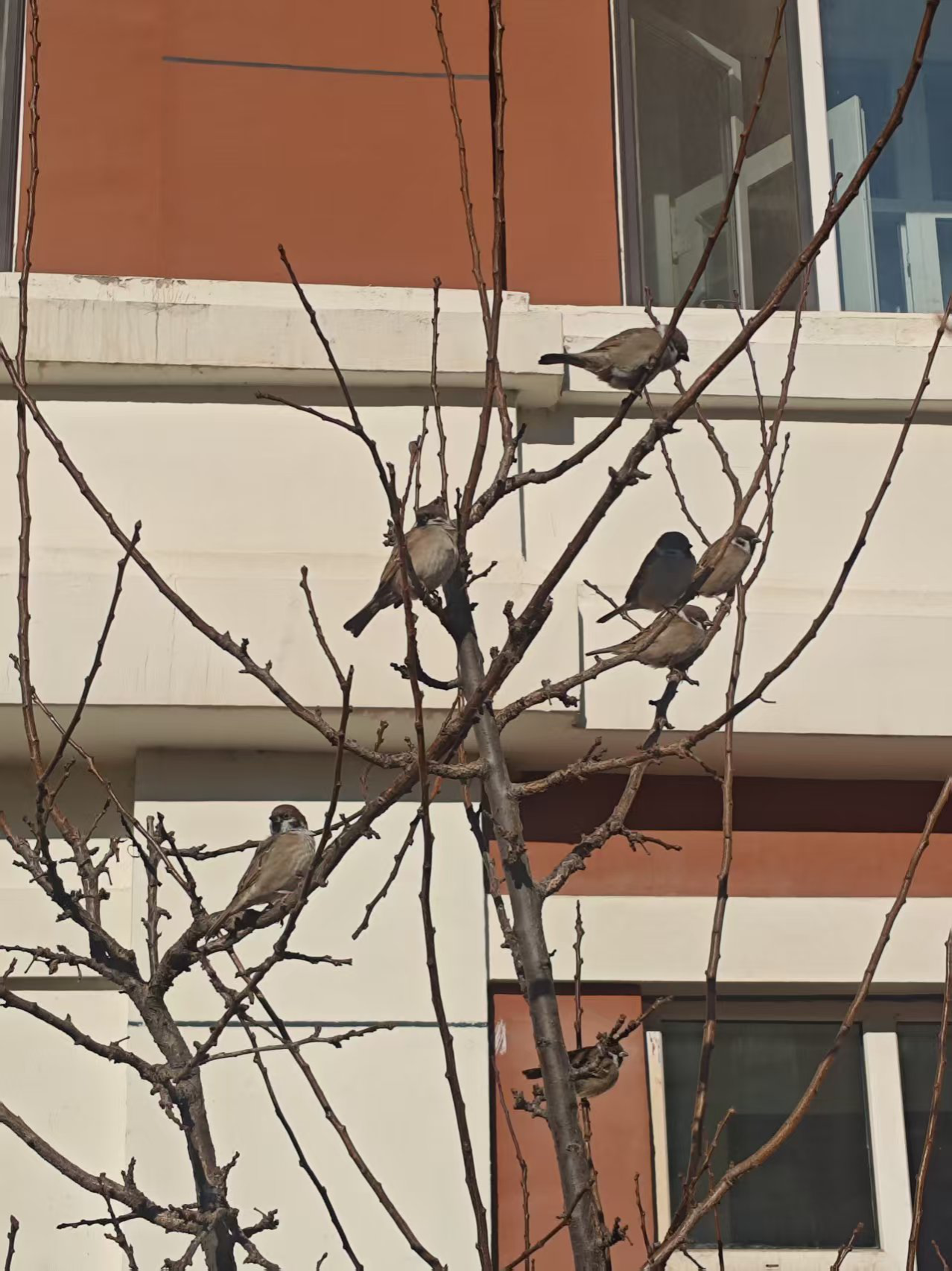 远看一树“秋叶”随风飞舞,近看一树小雀叽叽喳喳,略显萧瑟的秋景平添了几分灵动,也藏着校园里独有的秋日生机故事。