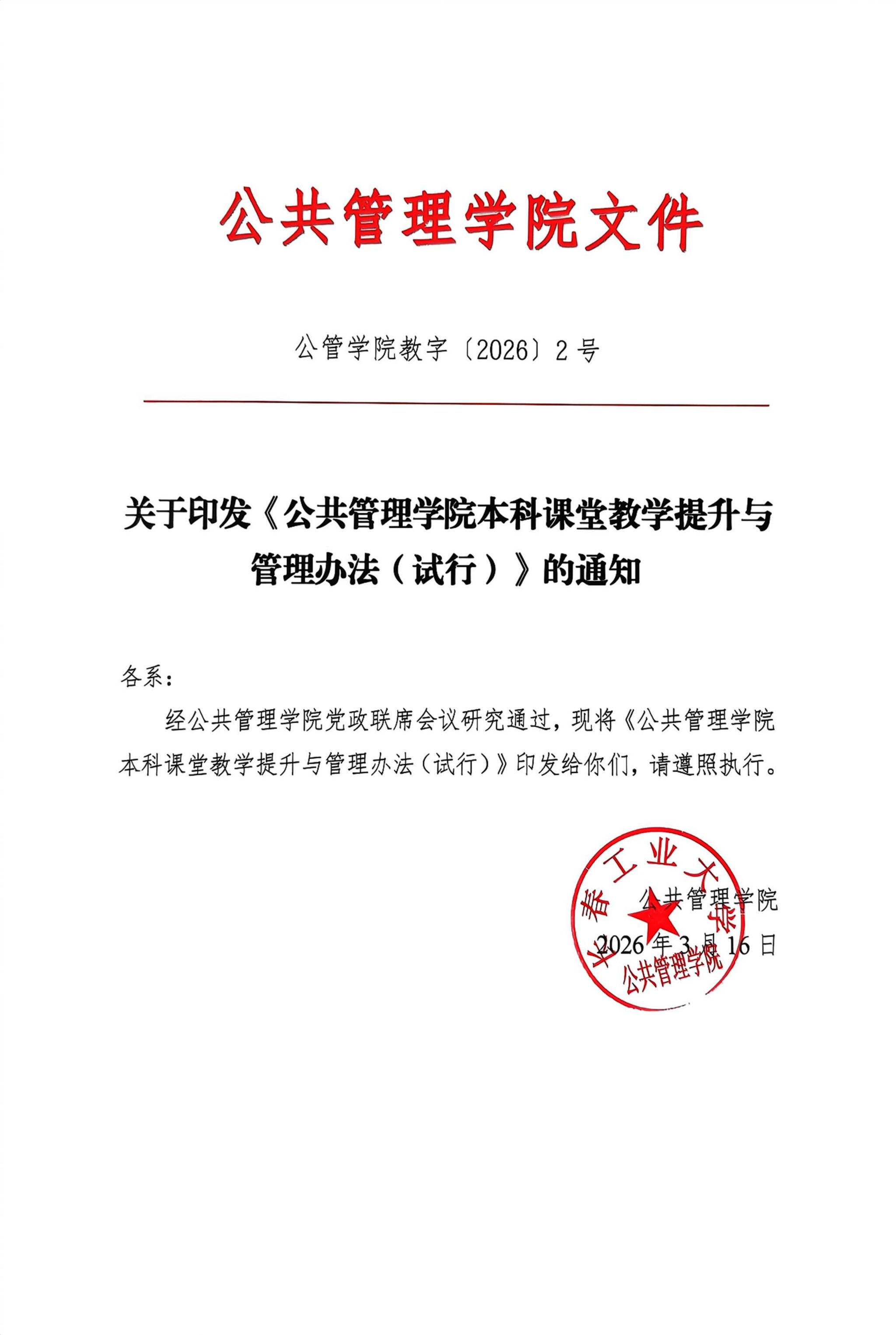 第一条 为落实立德树人根本任务,深化“新文科”建设,强化教学过程管理,全面提升本科课堂教学质量,结合学院专业特色与发展实际,特制定本办法。